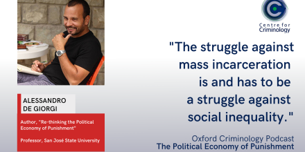 Centre for Criminology Blog Back to Faculty of Law Blogs Keywords(Field) Research and MethodsAcademiaAll Souls BlogAlumni StoriesAnnouncementsBrexit; Centre for Criminology; Border Criminologies; Prisoner Families; Global Criminal Justice HubConferenceConference reviewConversations on Criminal JusticeCourts and SentencingCrime and offendingCriminal JusticeCriminal lawCriminological theoryDeath PenaltyDeath Penalty; Global Criminal Justice Hub; Centre for CriminologyDetention centres; immigration detention; border controlEuropean UnionFrom the FieldHttps://www.law.ox.ac.uk/research/victim-communication-offenders-expectations-and-experiences-psychological-changeHuman RightsImmigration and MigrationLawMedia discourseMental healthPolice and PolicingPrisons and DetentionPrisons and Detention; Crime and Offending; Courts and SentencingPublicationsPunishmentResearch ImpactsSeminarSwedenSyriaTerrorismTransitional Justice and Human RightsTraumaUKVictims and Restorative JusticeVulnerabilityWomen More filters Less filters 20 December 2023 A Home for Christmas: Leaving Prison amidst a National Housing Crisis by: Helen Kosc 6 December 2023 Prisons and the Military by: Laura Haas 10 November 2023 The Paradox of Human Rights: Maintaining Violence against Women? by: Sophia Kjeldbjerg 31 October 2023 Legal Pipelines of the Green Transitions by: Aydin Orberk, Sophia Kjeldbjerg 22 November 2022 How does crime severity predict victim willingness to meet the offender? by: Diana Batchelor 11 October 2022 Episode 6: Transnational Crime and Criminology by: Alexei Schuster 7 October 2022 Episode 5: Criminal Justice Technology: The flaws, fallibility, and future of a quantitatively informed justice system by: Rhea Singh 28 September 2022 Critical Resistance and Abolition in Practice: A Conversation with Premal Dharia by: Valencia Scott, Annalena Wolcke 20 September 2022 “The Political Economy of Punishment” by: Betty Shuttleworth 13 September 2022 Get Lucky and Say Yes: Championing Diversity & Inclusion with Dame Fiona Woolf by: Ciara Foley 6 September 2022 “Sound of Da Police” by: Iulia Vatua 2 September 2022 Prison Reform in Pakistan: What is needed and why? by: Qadeer Alam 22 June 2022 Are United States prosecutors in the business of injustice? by: Shahil Pal 28 April 2022 New Research on the Overlapping Forms of Violence Experienced by Indigenous Young People and Refugees in Carceral Spaces in Australia by: Samantha O'Donnell 16 March 2022 CCTV In Indian Prisons: Who's Being Watched, How, and For What? by: Karan Tripathi Load More