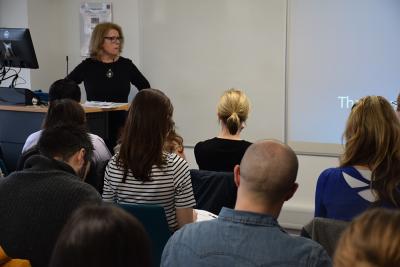 Finally, the day ended with a lively research panel on doctoral work at the Centre. Dr Roxana Willis talked about the role of community in restorative justice, making clear that working class participants, particularly defendants, fared less well in such dialogic environments and were at a disadvantage compared to middle class victims and offenders who had more ‘social’ and ‘cultural capital’. Dr Marie Tidball presented findings from her research on ‘The governance of offenders with autistic spectrum conditions in the CJS’, focusing on one of her cases that demonstrates the perverse effects of inadequate social care on autistic defendants who are brought into the criminal justice system in order to receive appropriate support. And Mr Cian O’Concubhair, who is at an earlier stage of his research, part of which is being facilitated by Thames Valley Police, spoke about contemporary police communications and police-media relations in a post-Leveson climate. As always, Thames Valley Police officers and staff asked interesting and sometimes rather tough questions, contributed comments that help us to develop further our work, and corrected our errors in understanding. Lively debates were had following each of our presentations and conversations continued into the breaks. A long day but a very enjoyable one!