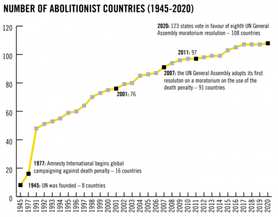 While some governments persist in using the death penalty, the overall trend remains: the world is moving away from it. With a record 123 states in 2020 supporting the biennial resolution of the UN General Assembly for a moratorium on executions, the momentum keeps growing. And while the Covid-19 pandemic played a certain role in the reduction of executions carried out and death sentences imposed, the figures recorded in 2020 provided further evidence of the global trend towards abolition – 2021 must not be the year of regression.