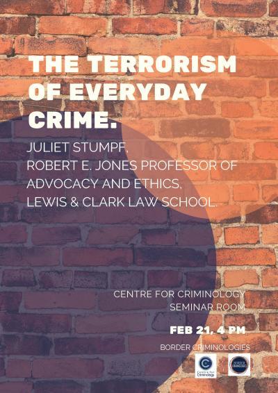 On Thursday, February 21, Julia Stumpf, Professor of Law at Lewis & Clark and pioneer in the field of crimmigration, gave a thought-provoking talk about her current work. Drawing on several recent events and the three theories of crimmigration, border penology, and enemy penology, she convincingly argued that the portrayal of everyday crime through the lens of border control and securitization create a platform for new legal frameworks of exclusion.